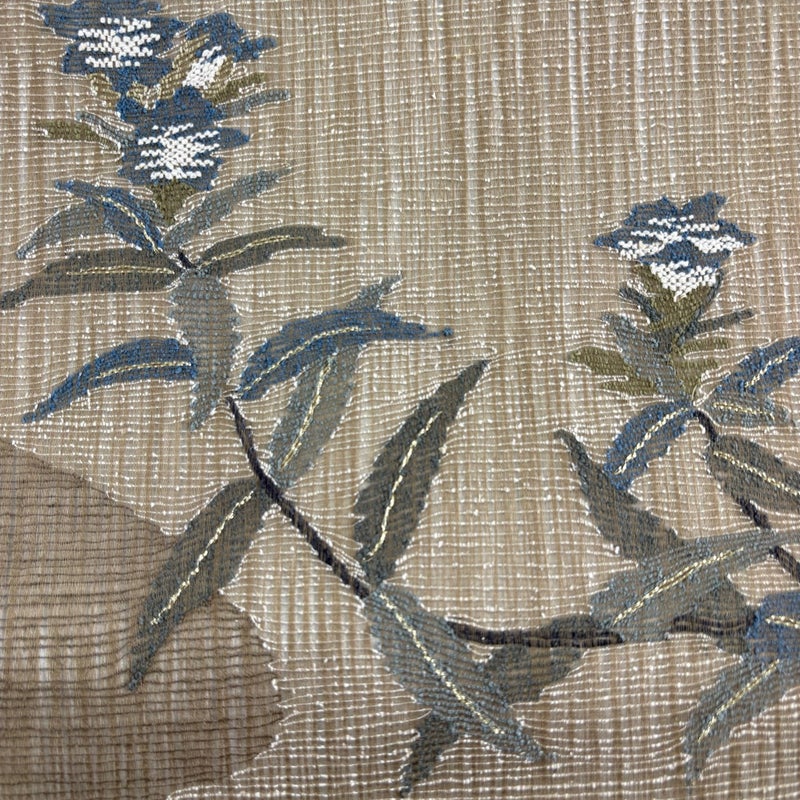 夏帯でございます。 セミフォーマルでお使いいただける袋帯でございます。 見る人に重たい印象を感じさせない女性ならではの、気品豊かな一品です。 裏地に糸ゆるみがございます。 リユース品としては目立った染み傷なく、状態の良いお品でございます。 ※なお、厳しく商品の状態確認を行っておりますが、記載の汚れ以外にも見落とし箇所がある可能性がある旨ご了承いただけますと幸いです。 沢山の商品の中からご覧いただき誠にありがとうございます。