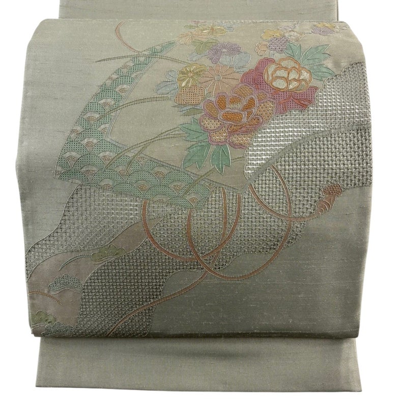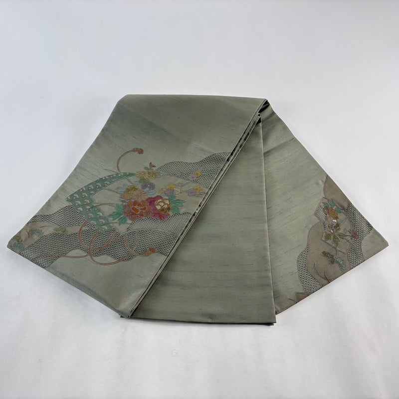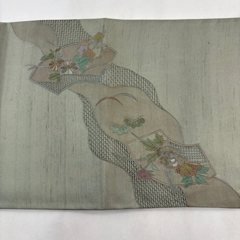 【袋帯】 灰色系 灰緑 秀品 A 帯丈436cm以上 7990-9980 美品 二万以下