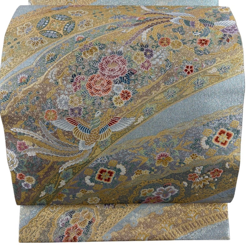 【袋帯】 青系 水色 秀品 A 帯丈426cm~435cm 7990-9980 美品 二万以下