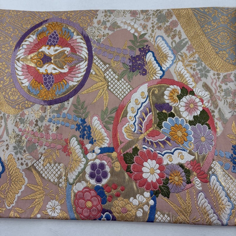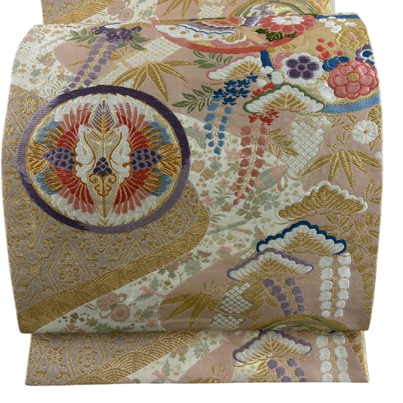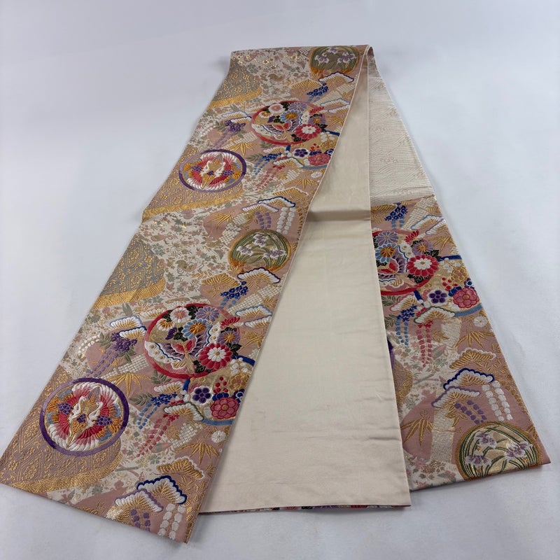 【袋帯】 赤系 薄ピンク 秀品 B 帯丈401cm~425cm 4000-7980 二万以下