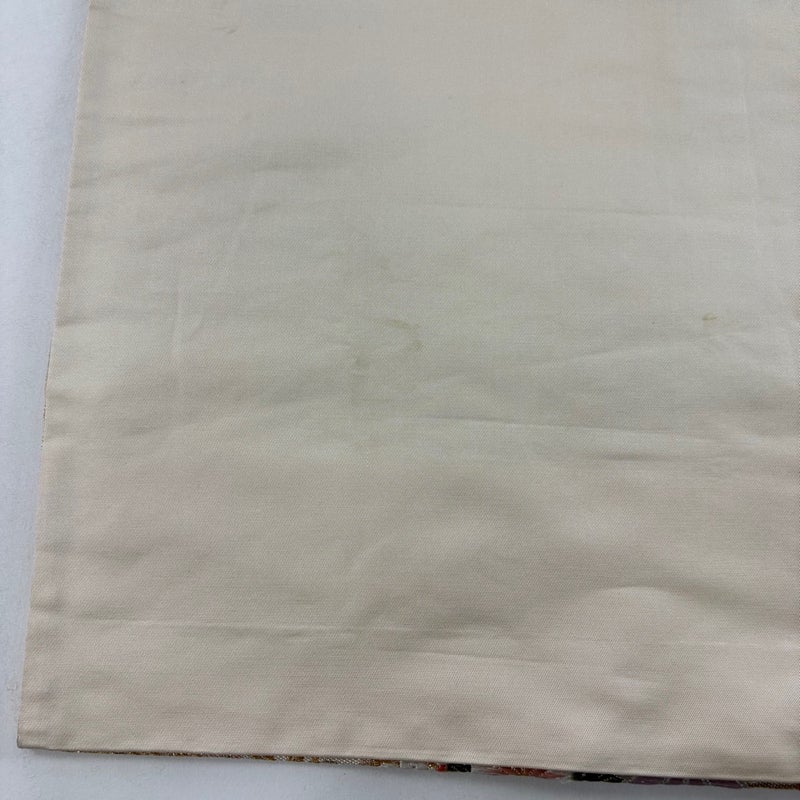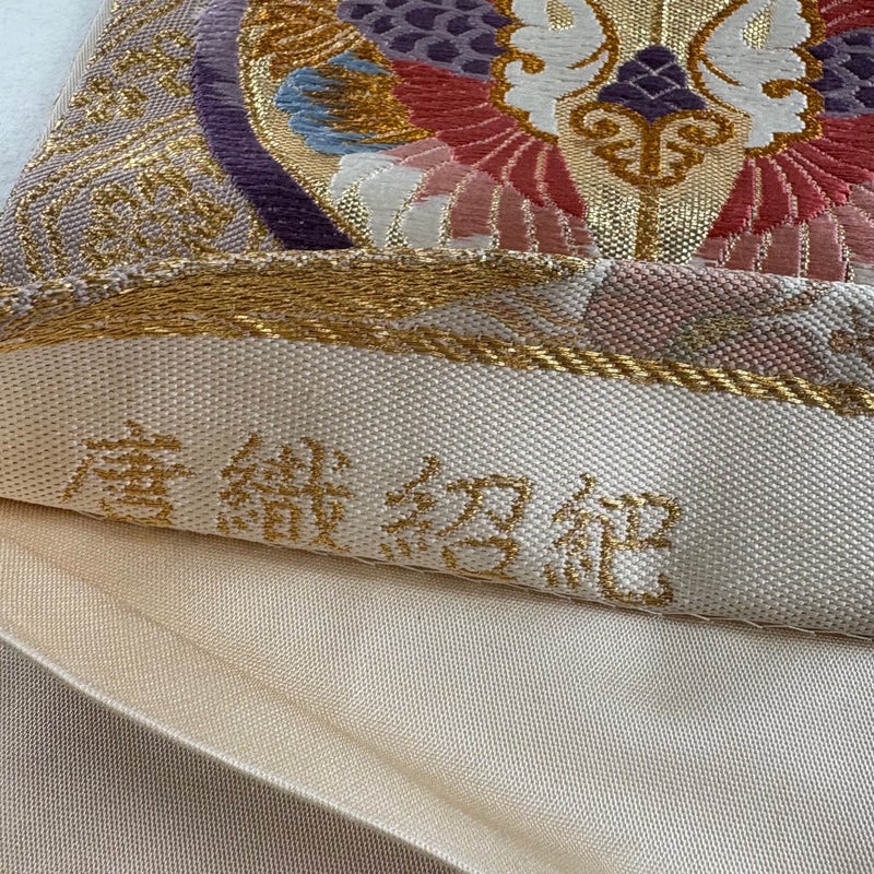 おめでたい席に相応しい意匠の袋帯でございます。 格式高いお席にもお使いいただけますので、お見逃しのないようお願いいたします。 締め跡がございます。 手先に薄いシミ、中無地にシワ、前柄に糸のほつれ、表地所々に唐織の糸ゆるみ、表地所々に箔の変色がございます。 裏地に薄いシミ、裏地所々に薄汚れ、裏地所々にシワがございます。 リユース品としては良い状態で、まだまだご活用頂けると思われます。 ※なお、厳しく商品の状態確認を行っておりますが、記載の汚れ以外にも見落とし箇所がある可能性がある旨ご了承いただけますと幸いです。 沢山の商品の中からご覧いただき誠にありがとうございます。