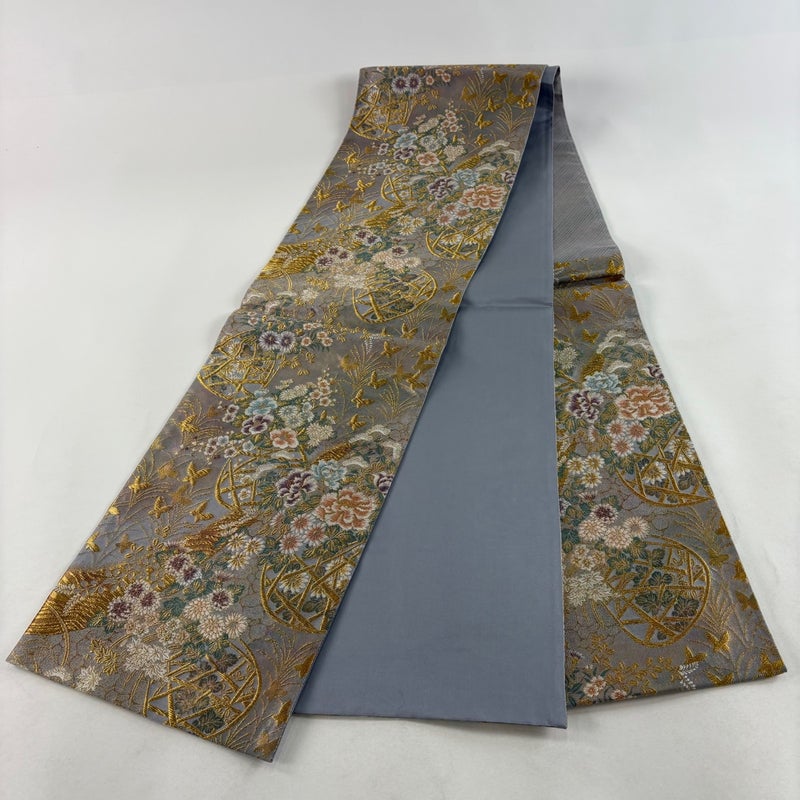 【袋帯】 灰色系 灰紫 秀品 A 帯丈426cm~435cm 7990-9980 美品 二万以下