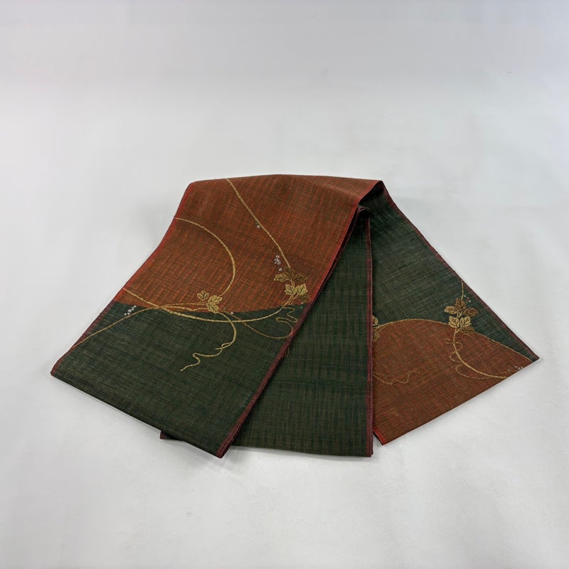 【袋帯】 茶系 茶緑色 名品 A 帯丈436cm以上 9990-29990 美品 二万以下