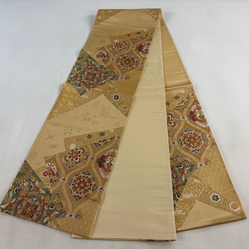 おめでたい席に相応しい意匠の袋帯でございます。 格式高いお席にもお使いいただけますので、お見逃しのないようお願いいたします。 締め跡がございます。 リユース品としては目立った染み傷なく、状態の良いお品でございます。 ※なお、厳しく商品の状態確認を行っておりますが、記載の汚れ以外にも見落とし箇所がある可能性がある旨ご了承いただけますと幸いです。 沢山の商品の中からご覧いただき誠にありがとうございます。