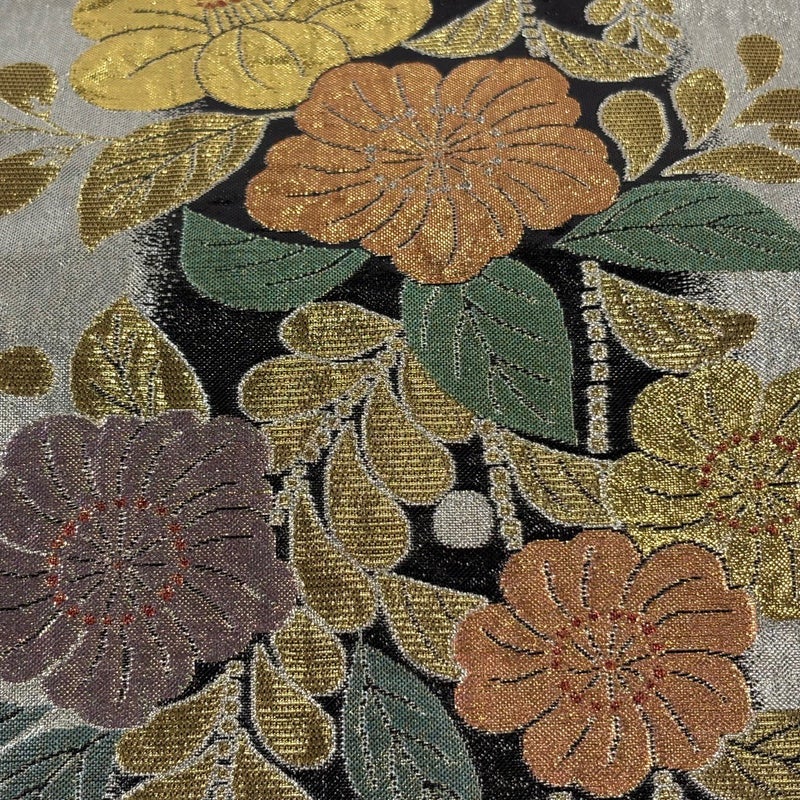 セミフォーマルでお使いいただける袋帯でございます。 見る人に重たい印象を感じさせない女性ならではの、気品豊かな一品です。 帯芯が入っておりません。 締め跡がございます。 中無地にシワがございます。 リユース品としては目立った染み傷なく、状態の良いお品でございます。 ※なお、厳しく商品の状態確認を行っておりますが、記載の汚れ以外にも見落とし箇所がある可能性がある旨ご了承いただけますと幸いです。 沢山の商品の中からご覧いただき誠にありがとうございます。
