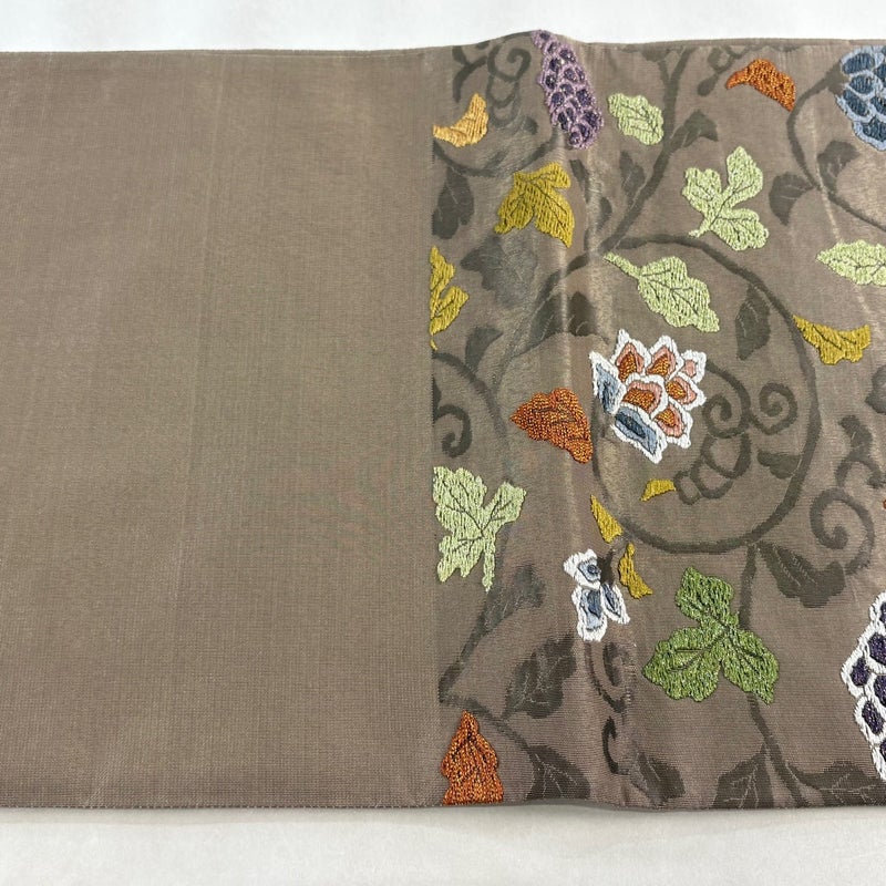セミフォーマルでお使いいただける袋帯でございます。 見る人に重たい印象を感じさせない女性ならではの、気品豊かな一品です。 お太鼓垂先間に柄の糸ゆるみがございます。 リユース品としては目立った染み傷なく、状態の良いお品でございます。 ※なお、厳しく商品の状態確認を行っておりますが、記載の汚れ以外にも見落とし箇所がある可能性がある旨ご了承いただけますと幸いです。 沢山の商品の中からご覧いただき誠にありがとうございます。