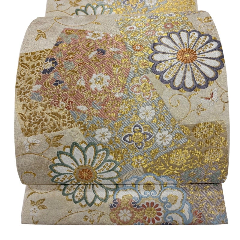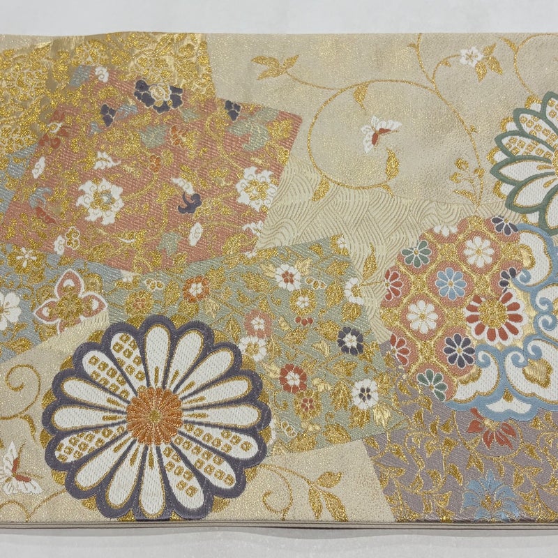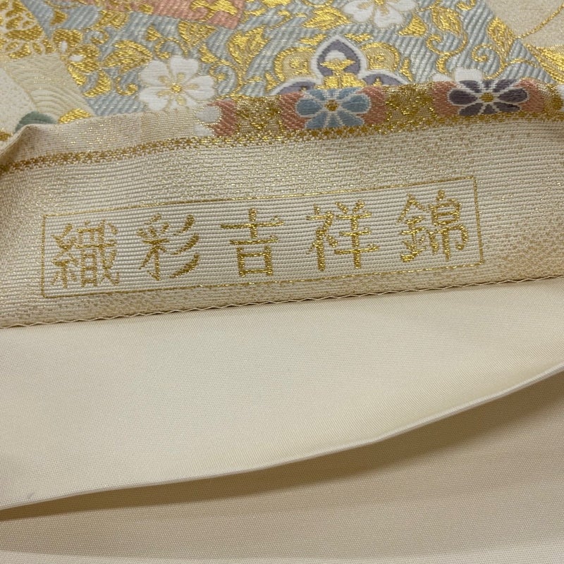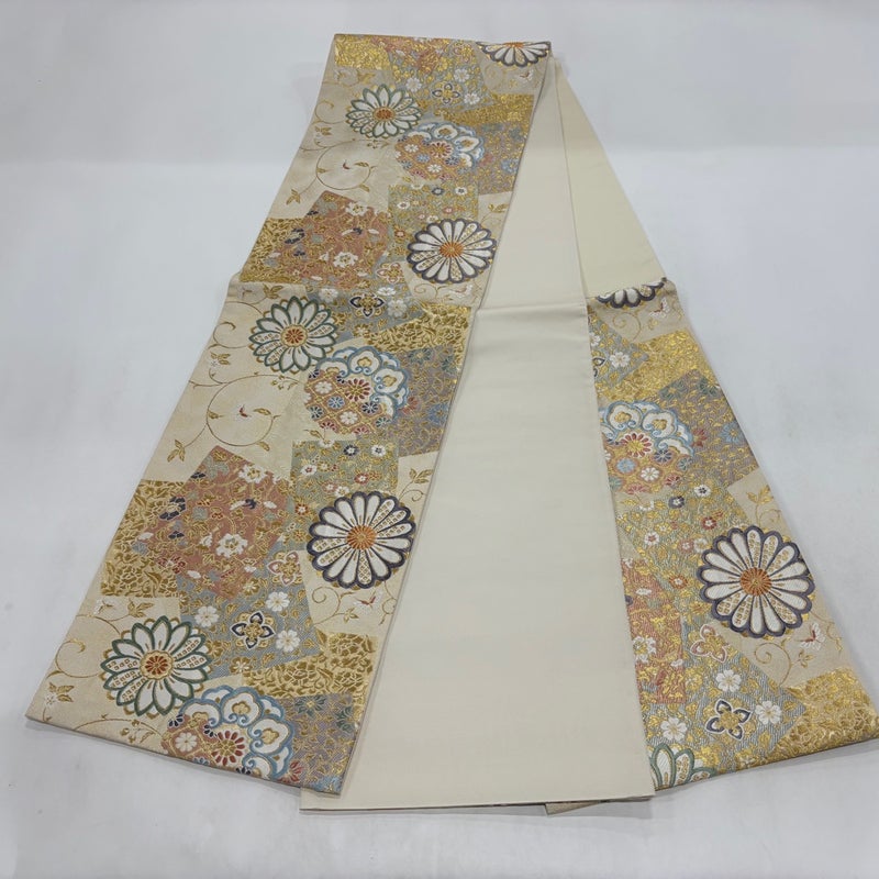 【袋帯】 白系 ベージュ 秀品 A 帯丈426cm~435cm 7990-9980 美品 二万以下