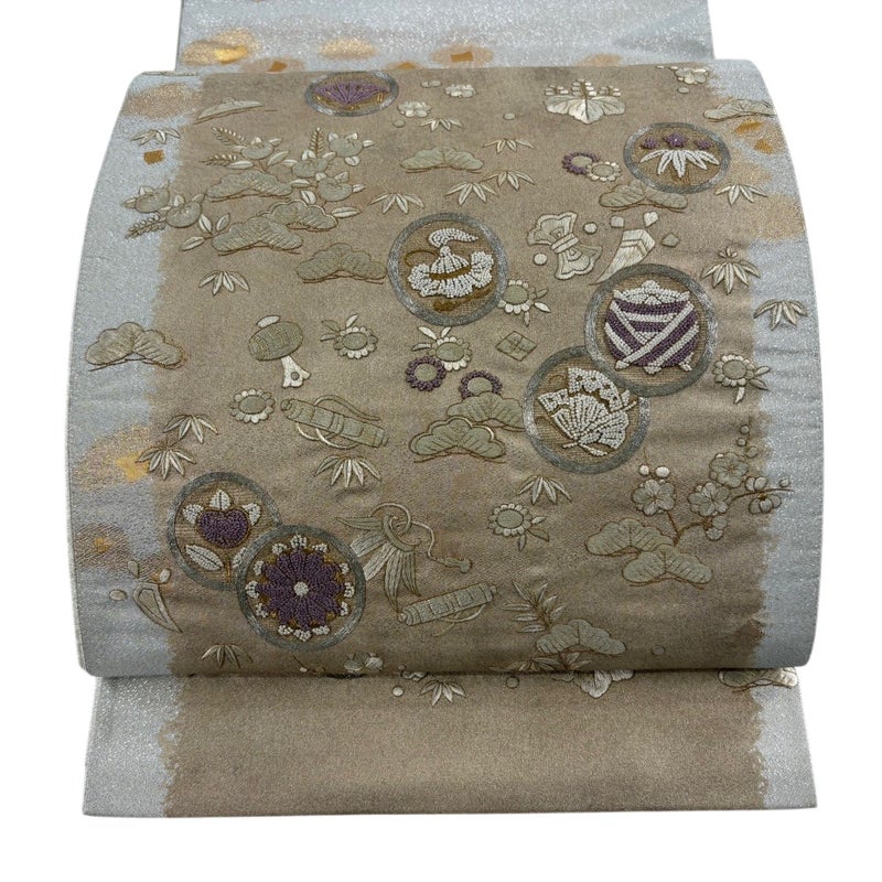 【袋帯】 白系 ベージュ 秀品 B 帯丈436cm以上 4000-7980 二万以下