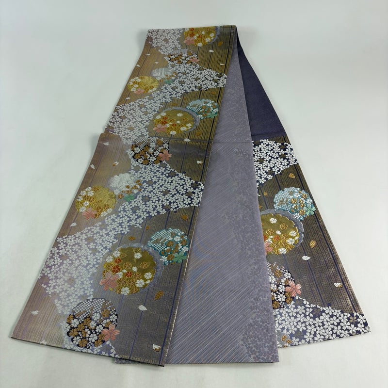 【袋帯】 灰色系 灰紫 秀品 A 帯丈436cm以上 7990-9980 美品 二万以下
