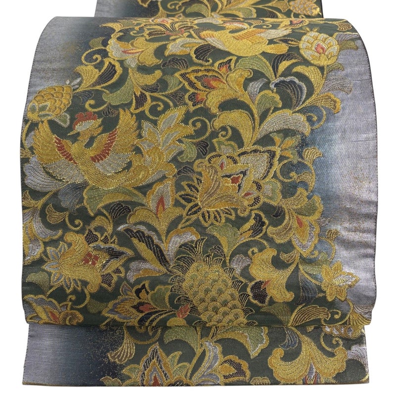 【袋帯】 灰色系 灰緑 秀品 B 帯丈426cm~435cm 4000-7980 二万以下