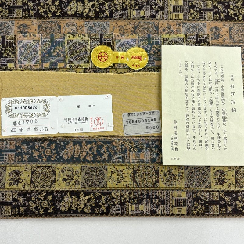 【着物ランク】逸品 【素材】正絹 【帯丈】約454cm 【帯幅】約31cm 【帯仕立て】仕立て上がり 【状態ランク】ランクA 【作家名】龍村美術織物 【帯着用シーン】セミフォーマル(色無地・付下げ)