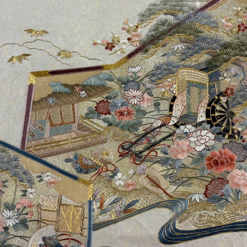 中国工藝美術大使である「蒋雪英」の作品です。 おめでたい席に相応しい意匠の袋帯でございます。 格式高いお席にもお使いいただけますので、お見逃しのないようお願いいたします。 帯芯が入っておりません。 締め跡がございます。 中無地全体にシミ、前柄に大きなシミ、締め跡沿いに汚れ、中無地に黄変がございます。 裏地所々にシミ、裏地全体に黄変がございます。 ご購入の際はその点ご留意ください。 ※なお、厳しく商品の状態確認を行っておりますが、記載の汚れ以外にも見落とし箇所がある可能性がある旨ご了承いただけますと幸いです。 沢山の商品の中からご覧いただき誠にありがとうございます。 【PR2】