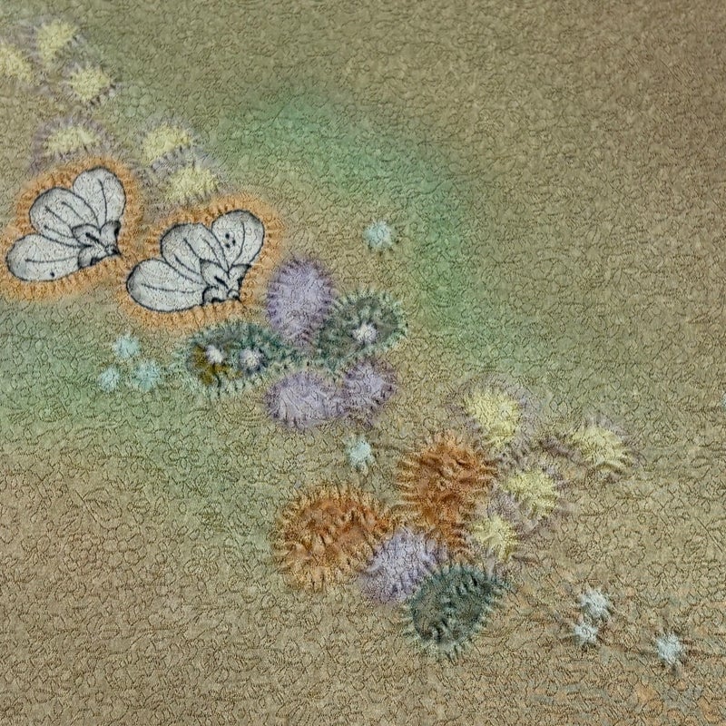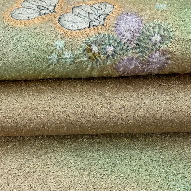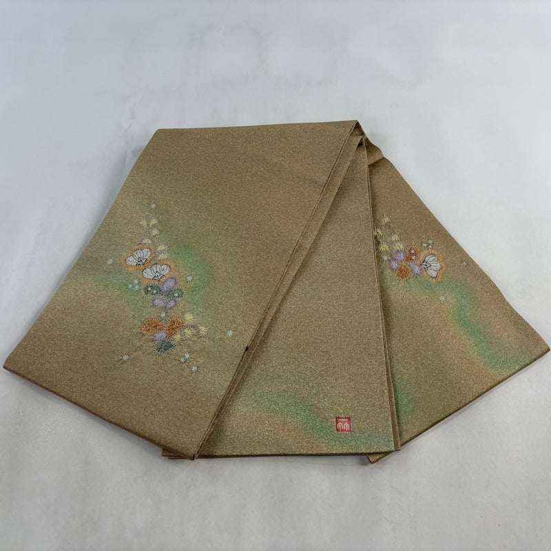 染色工芸家である久保田一竹の意思を継ぐ一竹工房が手掛けた作品でございます。 セミフォーマルでお使いいただける袋帯でございます。 見る人に重たい印象を感じさせない女性ならではの、気品豊かな一品です。 締め跡がございます。 リユース品としては目立った染み傷なく、状態の良いお品でございます。 ※なお、厳しく商品の状態確認を行っておりますが、記載の汚れ以外にも見落とし箇所がある可能性がある旨ご了承いただけますと幸いです。 沢山の商品の中からご覧いただき誠にありがとうございます。 【PR2】