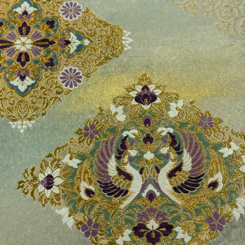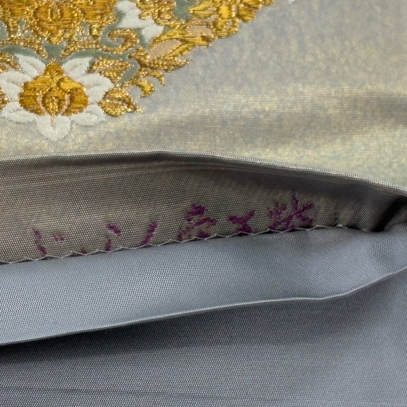 京都西陣、染と織の名門「じゅらく」謹製による作品でございます。 セミフォーマルでお使いいただける袋帯でございます。 見る人に重たい印象を感じさせない女性ならではの、気品豊かな一品です。 締め跡がございます。 リユース品としては目立った染み傷なく、状態の良いお品でございます。 ※なお、厳しく商品の状態確認を行っておりますが、記載の汚れ以外にも見落とし箇所がある可能性がある旨ご了承いただけますと幸いです。 沢山の商品の中からご覧いただき誠にありがとうございます。 【PR2】