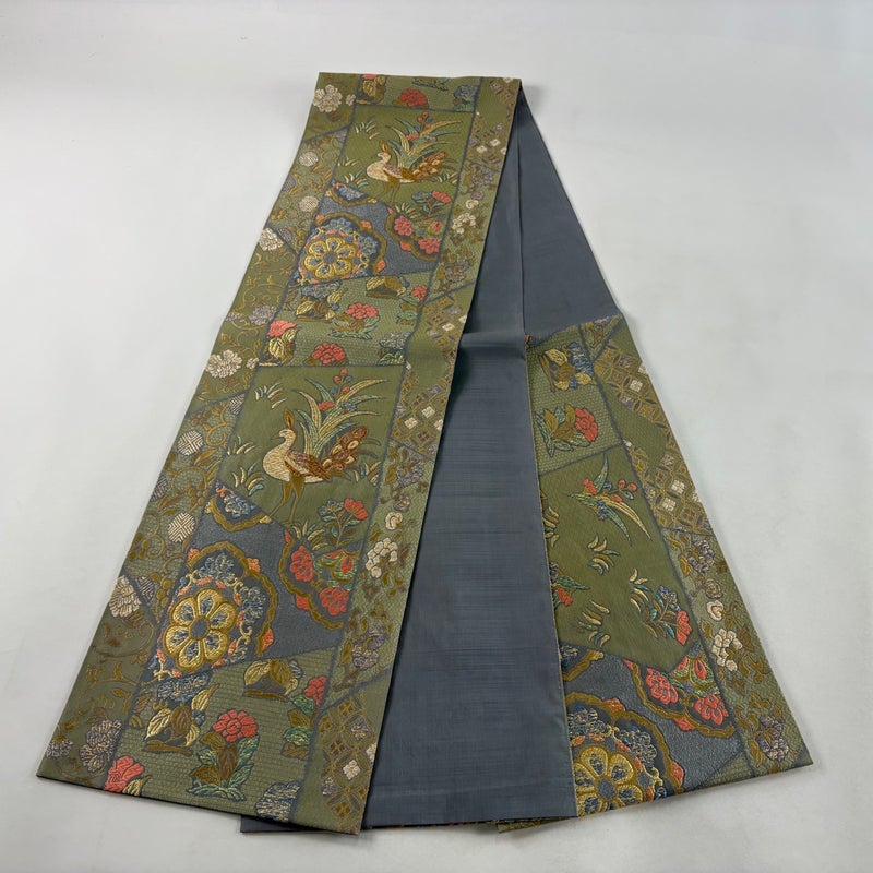 【袋帯】 灰色系 灰緑 秀品 B 帯丈436cm以上 4000-7980 二万以下
