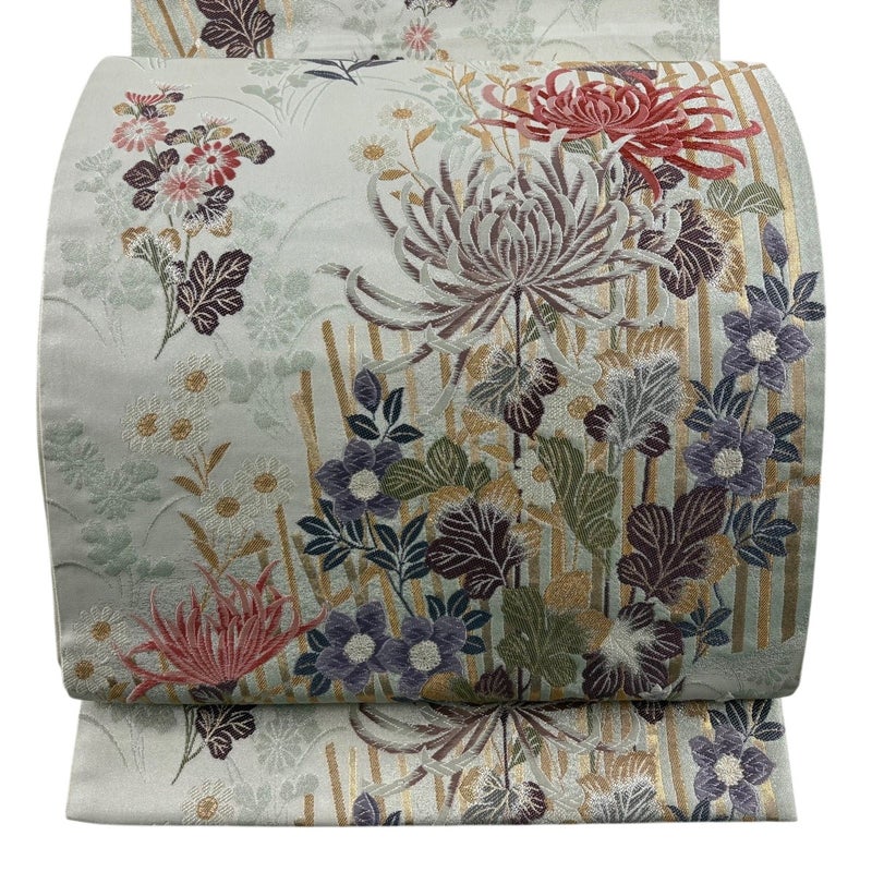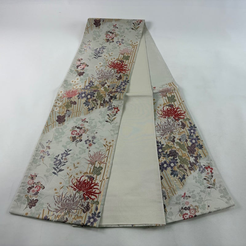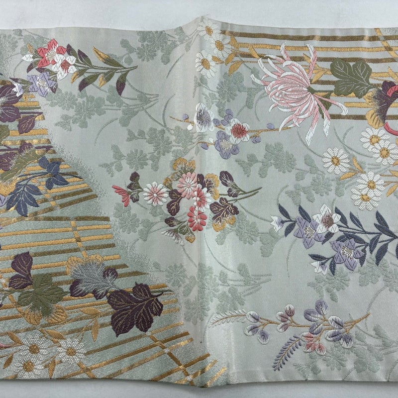 【袋帯】 灰色系 灰緑 秀品 A 帯丈436cm以上 7990-9980 美品 二万以下