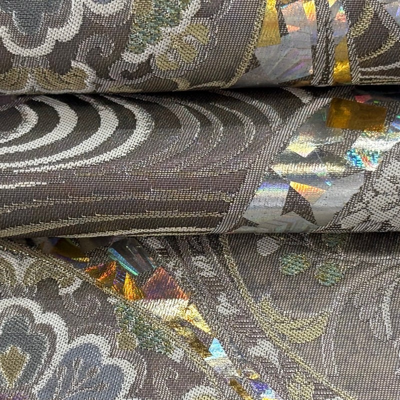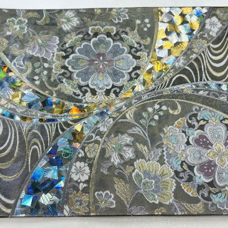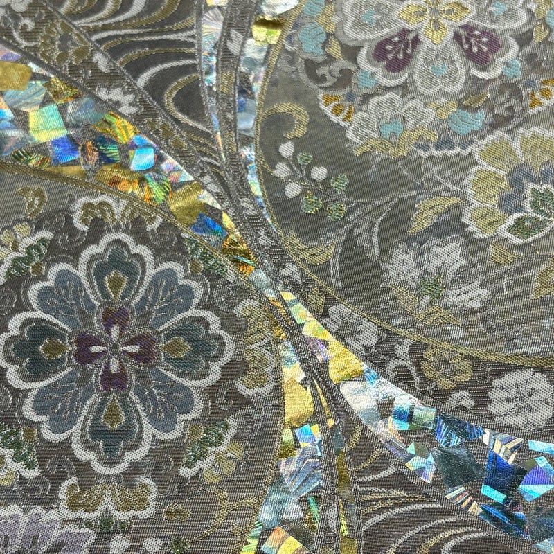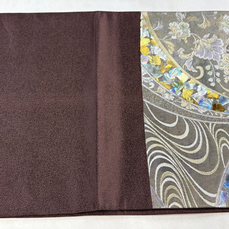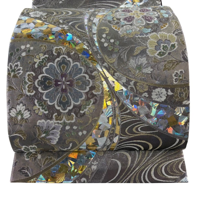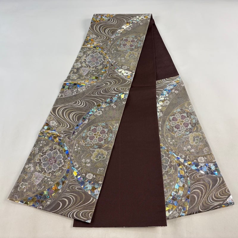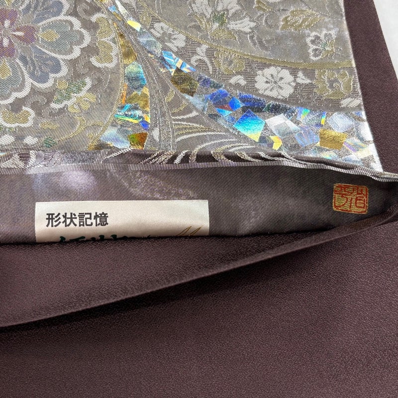 角度によって巧みに表情を変え反射する箔加工を得意とする堀省平の作品でございます。 おめでたい席に相応しい意匠の袋帯でございます。 格式高いお席にもお使いいただけますので、お見逃しのないようお願いいたします。 締め跡がございます。 ※裏地は手先から垂先まで締め跡がございます。 締め跡沿いに薄汚れがございます。 リユース品としては目立った染み傷なく、状態の良いお品でございます。 ※なお、厳しく商品の状態確認を行っておりますが、記載の汚れ以外にも見落とし箇所がある可能性がある旨ご了承いただけますと幸いです。 沢山の商品の中からご覧いただき誠にありがとうございます。