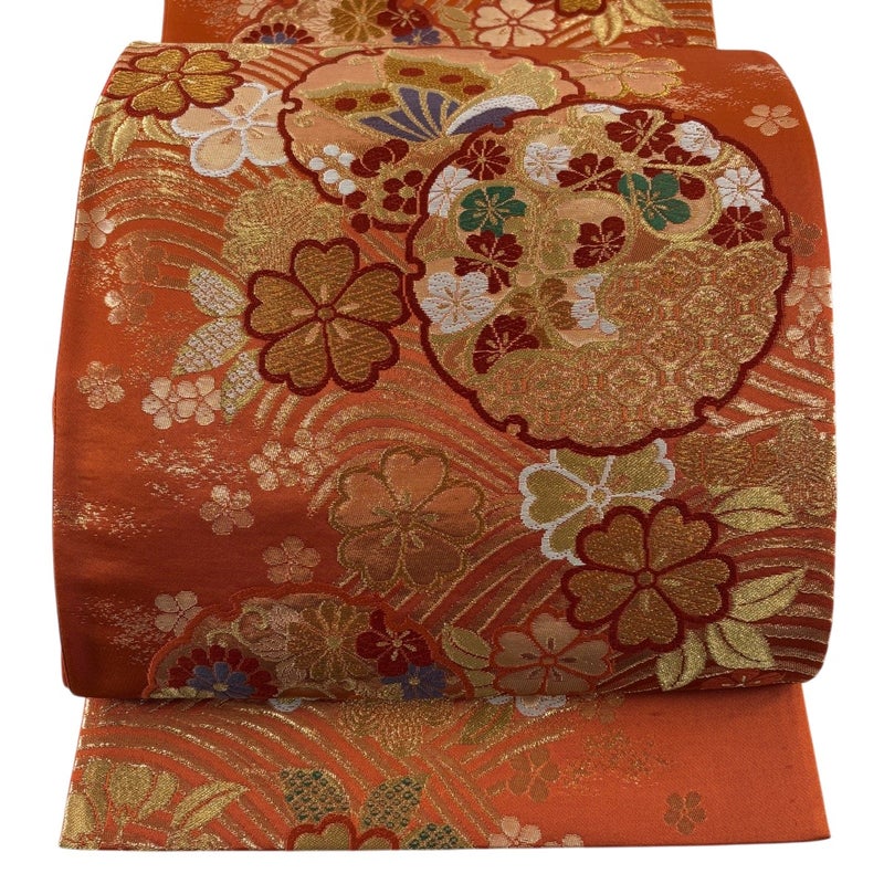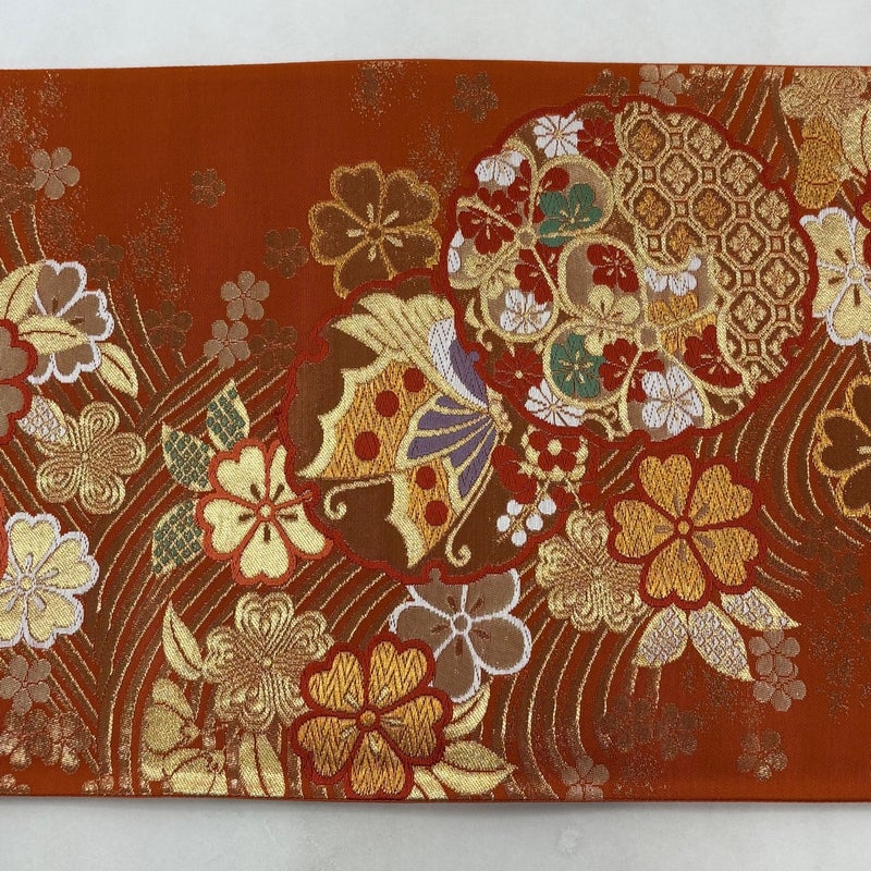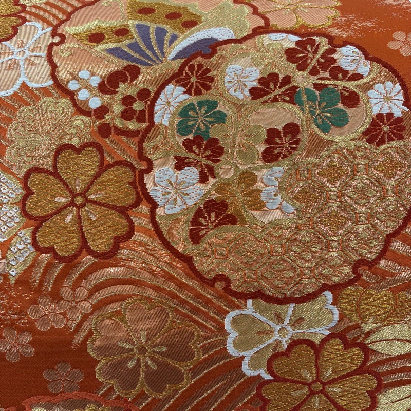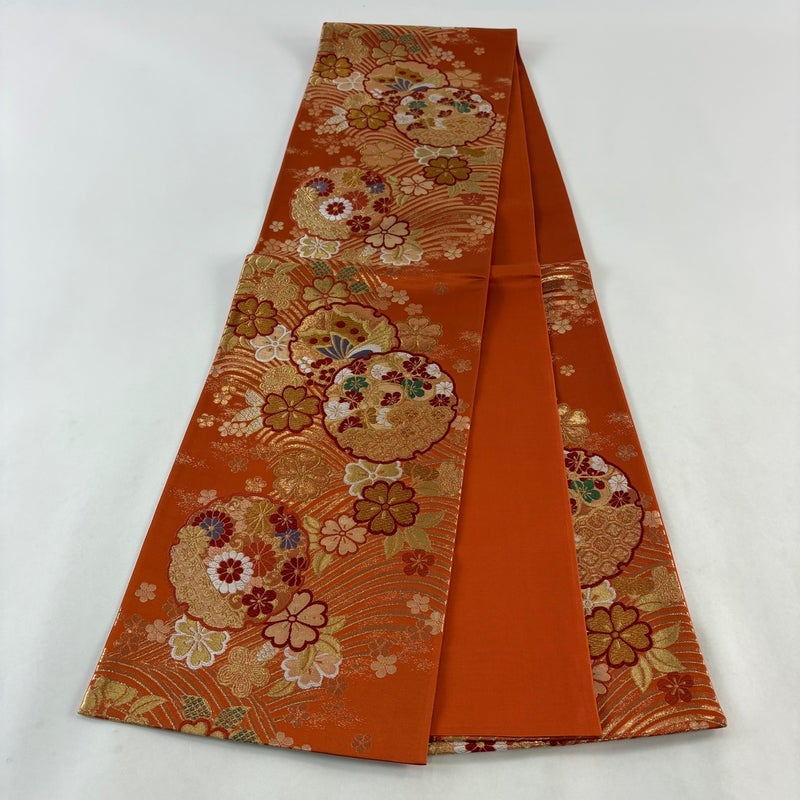 【袋帯】 赤系 オレンジ 秀品 A 帯丈436cm以上 7990-9980 美品 二万以下