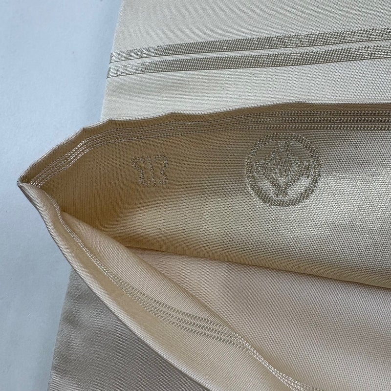 軍配マークと三本線が特徴の「川島織物」謹製の作品です。 セミフォーマルでお使いいただける袋帯でございます。 見る人に重たい印象を感じさせない女性ならではの、気品豊かな一品です。 締め跡がございます。 中無地所々に点シミ、中無地に薄汚れがございます。 裏地所々に点シミ、裏地の帯縁所々に薄汚れがございます。 リユース品としては良い状態で、まだまだご活用頂けると思われます。 ※なお、厳しく商品の状態確認を行っておりますが、記載の汚れ以外にも見落とし箇所がある可能性がある旨ご了承いただけますと幸いです。 沢山の商品の中からご覧いただき誠にありがとうございます。