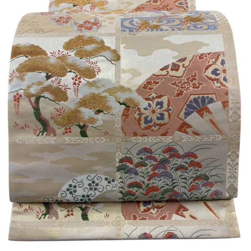 【袋帯】 白系 ベージュ 秀品 B 帯丈436cm以上 4000-7980 二万以下