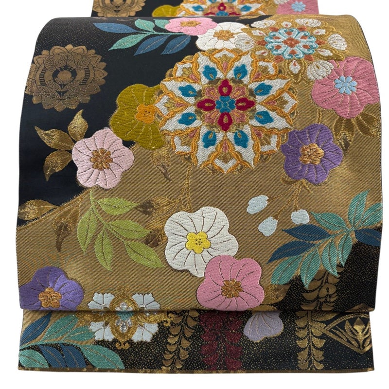 【袋帯】 黒系 黒 秀品 A 帯丈426cm~435cm 7990-9980 美品 二万以下
