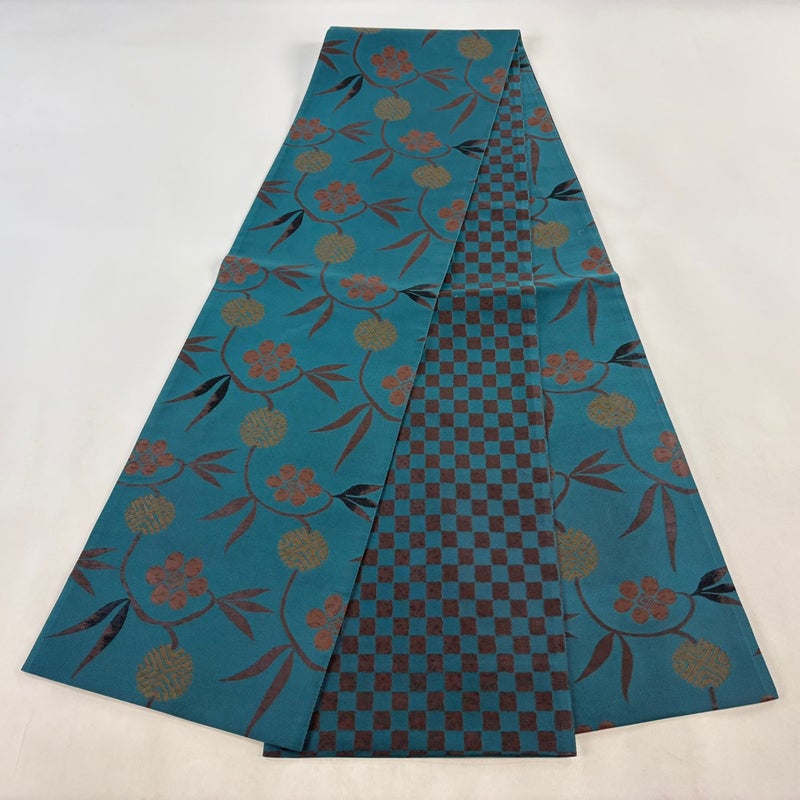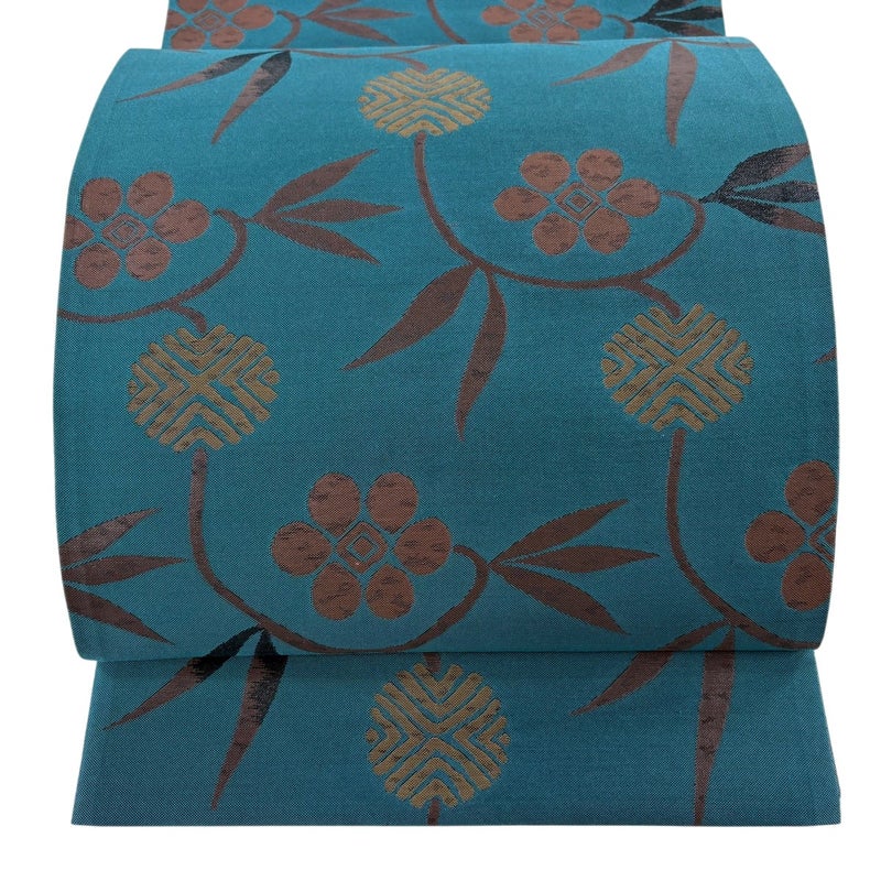 【美品】 袋帯 秀品 笹蔓 箔 青緑 全通 正絹