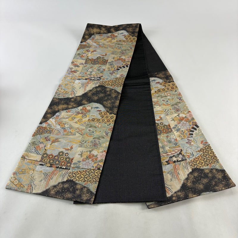 【美品】 袋帯 名品 松竹梅 宝尽くし 箔 ベージュ 六通 正絹