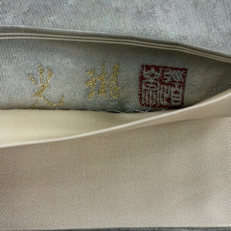 京友禅作家である松尾光琳の作品でございます。 セミフォーマルでお使いいただける袋帯でございます。 見る人に重たい印象を感じさせない女性ならではの、気品豊かな一品です。 締め跡がございます。 お太鼓垂先間に箔のヨレ、お太鼓付近と手先前柄間にシミがございます。 リユース品としては良い状態で、まだまだご活用頂けると思われます。 ※なお、厳しく商品の状態確認を行っておりますが、記載の汚れ以外にも見落とし箇所がある可能性がある旨ご了承いただけますと幸いです。 沢山の商品の中からご覧いただき誠にありがとうございます。