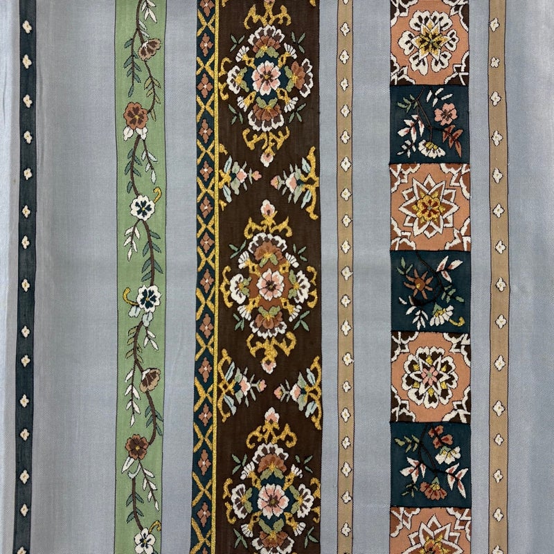 セミフォーマルでお使いいただける袋帯でございます。 見る人に重たい印象を感じさせない女性ならではの、気品豊かな一品です。 締め跡がございます。 表地所々にシミとヤケ、締め跡沿いに汚れがございます。 裏地所々にシミとヤケと生地のヨレがございます。 ご購入の際はその点ご留意ください。 ※なお、厳しく商品の状態確認を行っておりますが、記載の汚れ以外にも見落とし箇所がある可能性がある旨ご了承いただけますと幸いです。 沢山の商品の中からご覧いただき誠にありがとうございます。