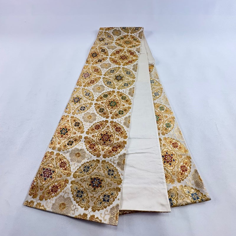 【袋帯】 白系 クリーム 名品 A 帯丈436cm以上 9990-29990 美品 二万以下