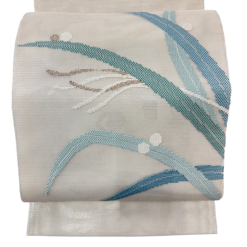 セミフォーマルでお使いいただける夏帯の袋帯でございます。 見る人に重たい印象を感じさせない女性ならではの、気品豊かな一品です。 薄い締め跡がございます。 手先前柄間に生地のヨレがございます。 リユース品としては目立った染み傷なく、状態の良いお品でございます。 ※なお、厳しく商品の状態確認を行っておりますが、記載の汚れ以外にも見落とし箇所がある可能性がある旨ご了承いただけますと幸いです。 沢山の商品の中からご覧いただき誠にありがとうございます。