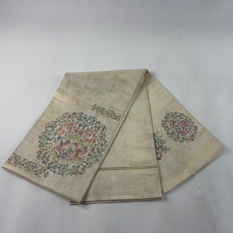 【袋帯】 白系 ベージュ 秀品 A 帯丈436cm以上 7990-9980 美品 二万以下