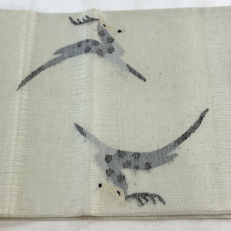夏帯でございます。 セミフォーマルでお使いいただける袋帯でございます。 見る人に重たい印象を感じさせない女性ならではの、気品豊かな一品です。 締め跡がございます。 表地所々にヤケ、締め跡沿いに汚れ、お太鼓に糸のほつれがございます。 リユース品としては良い状態で、まだまだご活用頂けると思われます。 ※なお、厳しく商品の状態確認を行っておりますが、記載の汚れ以外にも見落とし箇所がある可能性がある旨ご了承いただけますと幸いです。 沢山の商品の中からご覧いただき誠にありがとうございます。