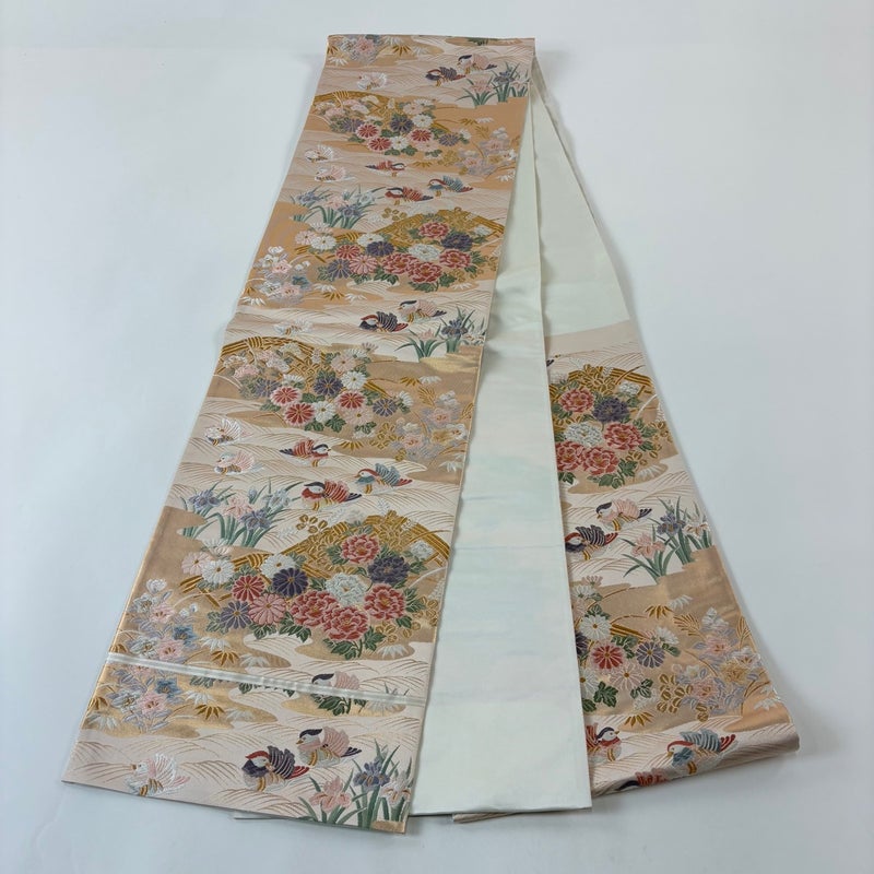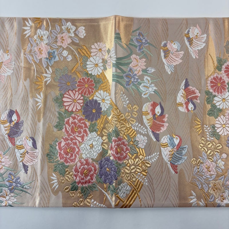 【袋帯】 赤系 ピンクベージュ 秀品 A 帯丈426cm~435cm 7990-9980 美品 二万以下