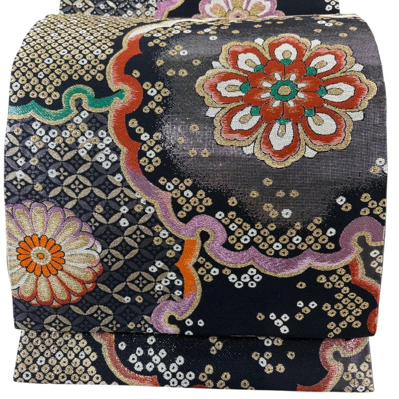 【袋帯】 黒系 黒 秀品 A 帯丈436cm以上 7990-9980 美品 二万以下