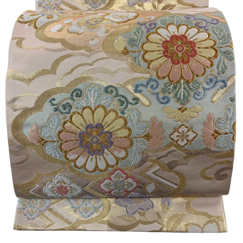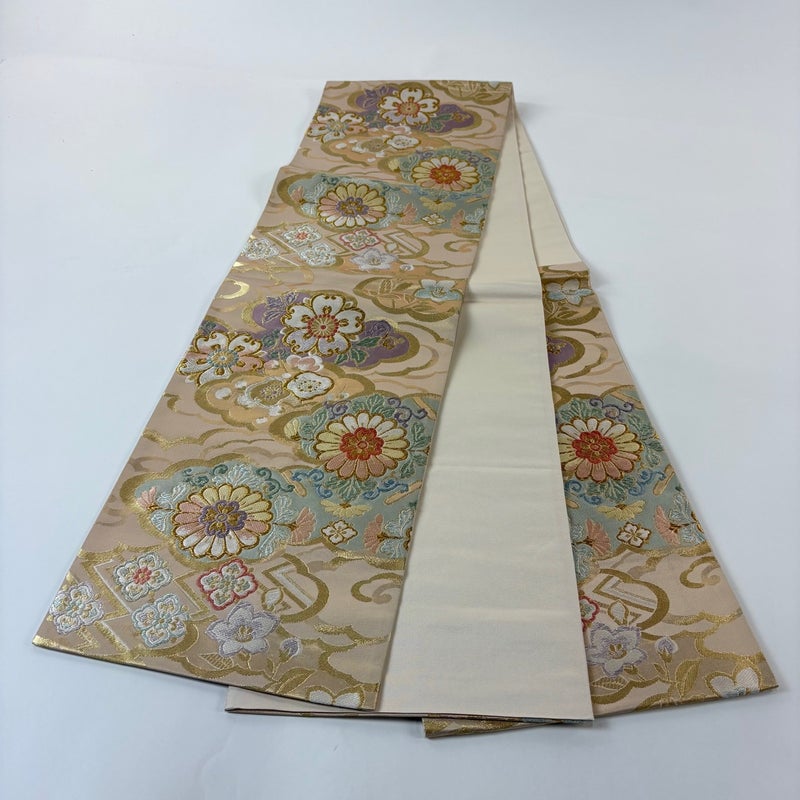【袋帯】 白系 ベージュ 秀品 A 帯丈426cm~435cm 7990-9980 美品 二万以下
