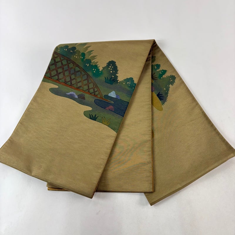 【袋帯】 茶系 茶緑色 秀品 A 帯丈436cm以上 7990-9980 美品 二万以下