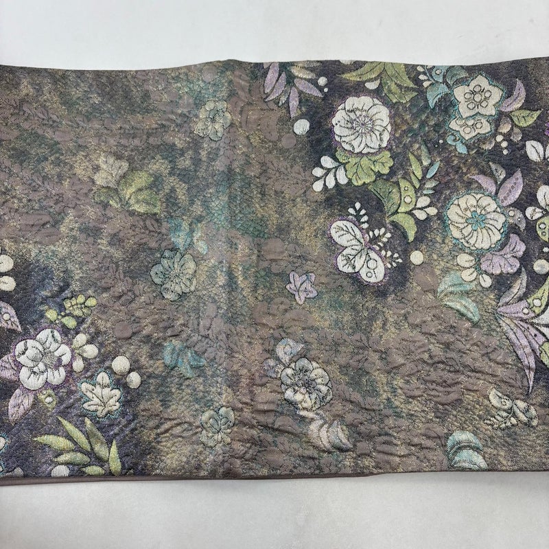 セミフォーマルでお使いいただける袋帯でございます。 見る人に重たい印象を感じさせない女性ならではの、気品豊かな一品です。 締め跡がございます。 リユース品としては目立った染み傷なく、状態の良いお品でございます。 ※なお、厳しく商品の状態確認を行っておりますが、記載の汚れ以外にも見落とし箇所がある可能性がある旨ご了承いただけますと幸いです。 沢山の商品の中からご覧いただき誠にありがとうございます。