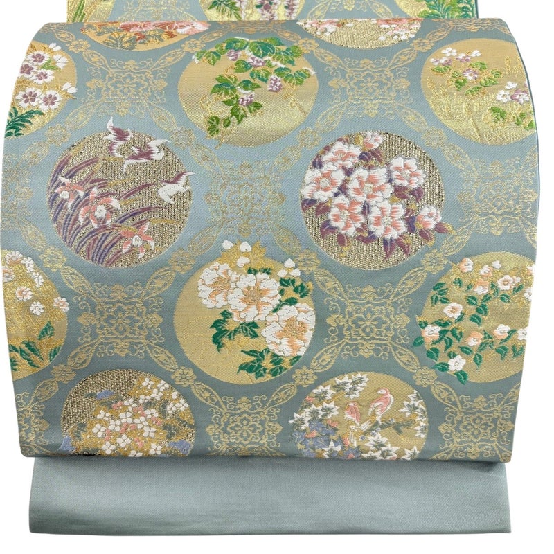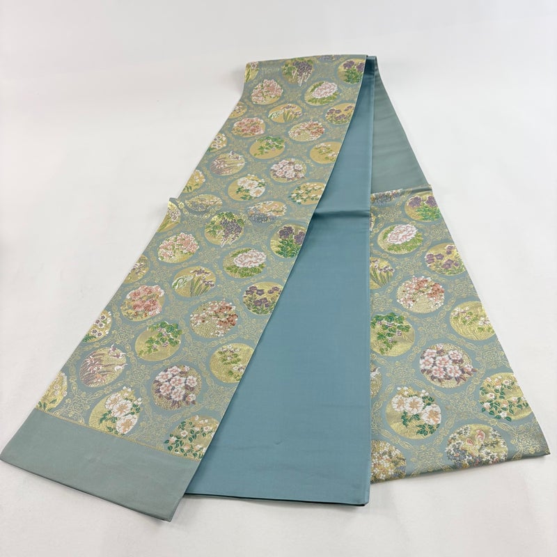 【袋帯】 灰色系 灰緑 秀品 B 帯丈436cm以上 4000-7980 二万以下