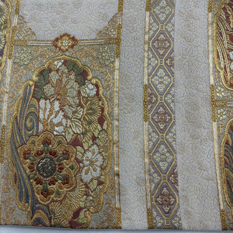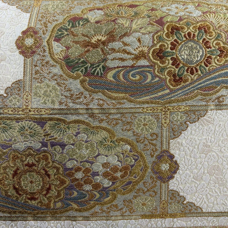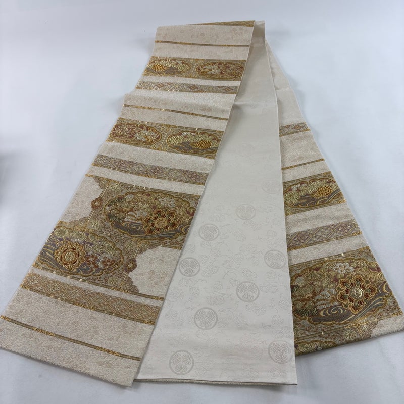 【袋帯】 白系 ベージュ 秀品 A 帯丈436cm以上 7990-9980 美品 二万以下