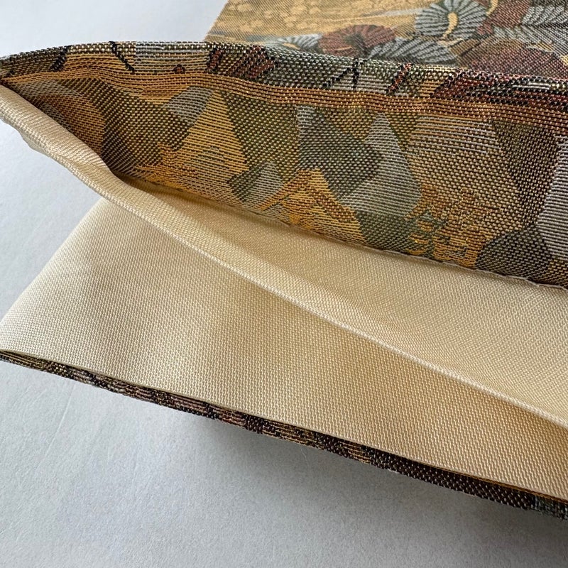 おめでたい席に相応しい意匠の袋帯でございます。 格式高いお席にもお使いいただけますので、お見逃しのないようお願いいたします。 締め跡がございます。 裏地所々にシミがございます。 リユース品としては良い状態で、まだまだご活用頂けると思われます。 ※なお、厳しく商品の状態確認を行っておりますが、記載の汚れ以外にも見落とし箇所がある可能性がある旨ご了承いただけますと幸いです。 沢山の商品の中からご覧いただき誠にありがとうございます。