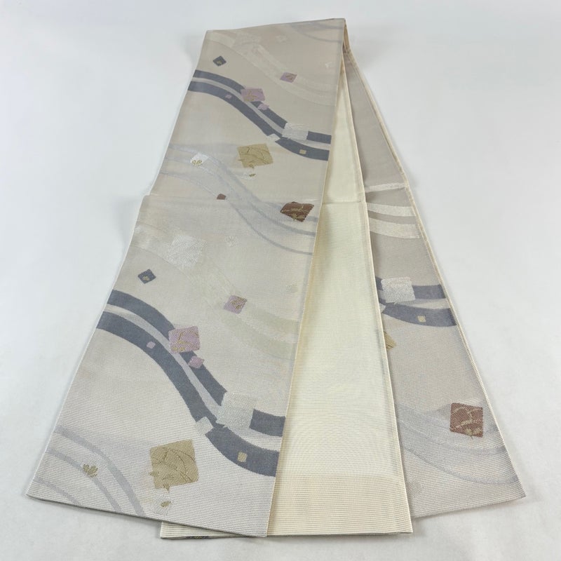 夏帯でございます。 セミフォーマルでお使いいただける袋帯でございます。 見る人に重たい印象を感じさせない女性ならではの、気品豊かな一品です。 締め跡がございます。 リユース品としては目立った染み傷なく、状態の良いお品でございます。 ※なお、厳しく商品の状態確認を行っておりますが、記載の汚れ以外にも見落とし箇所がある可能性がある旨ご了承いただけますと幸いです。 沢山の商品の中からご覧いただき誠にありがとうございます。