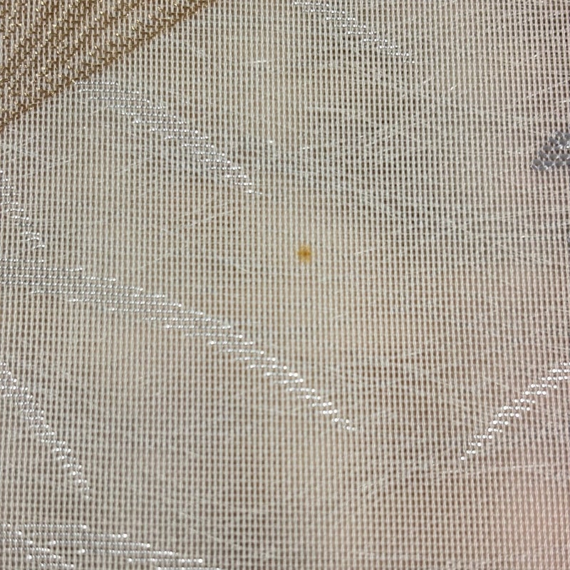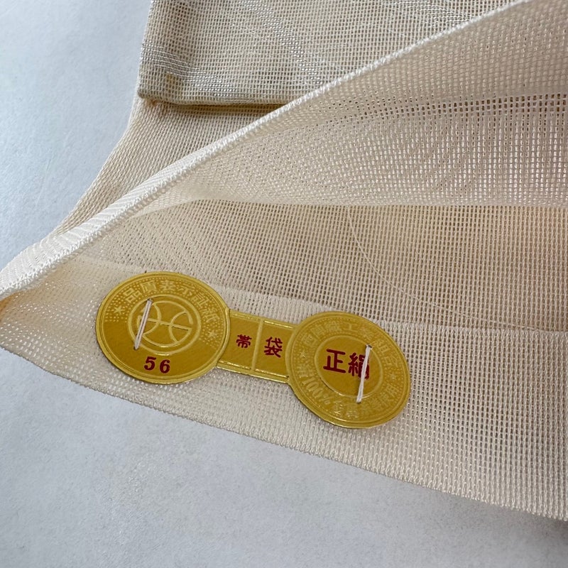 夏帯でございます。 碁盤の目をモチーフにした落款が特徴で、伝統の手織りにこだわりのある織元「洛陽織物」の帯です。 セミフォーマルでお使いいただける袋帯でございます。 見る人に重たい印象を感じさせない女性ならではの、気品豊かな一品です。 締め跡がございます。 お太鼓付近に薄ヤケ、お太鼓垂先間にシミがございます。 リユース品としては目立った染み傷なく、状態の良いお品でございます。 ※なお、厳しく商品の状態確認を行っておりますが、記載の汚れ以外にも見落とし箇所がある可能性がある旨ご了承いただけますと幸いです。 沢山の商品の中からご覧いただき誠にありがとうございます。