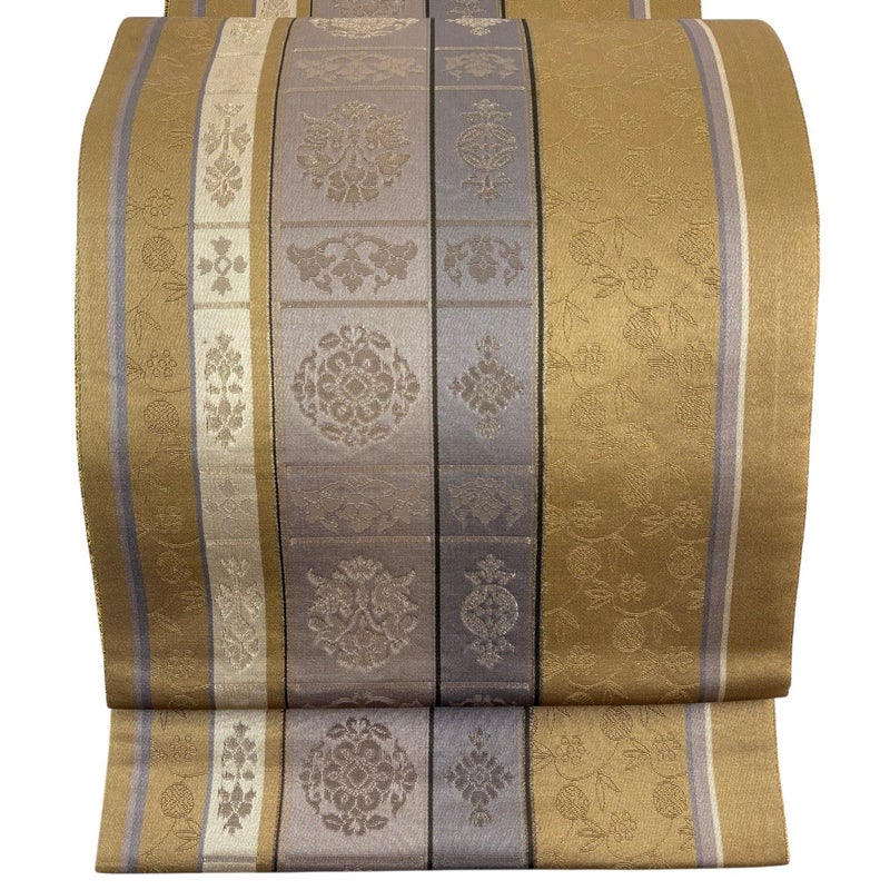 【着物ランク】秀品 【素材】正絹 【帯丈】約434cm 【帯幅】約30.5cm 【帯仕立て】仕立て上がり 【状態ランク】ランクB 【帯着用シーン】セミフォーマル(色無地・付下げ)