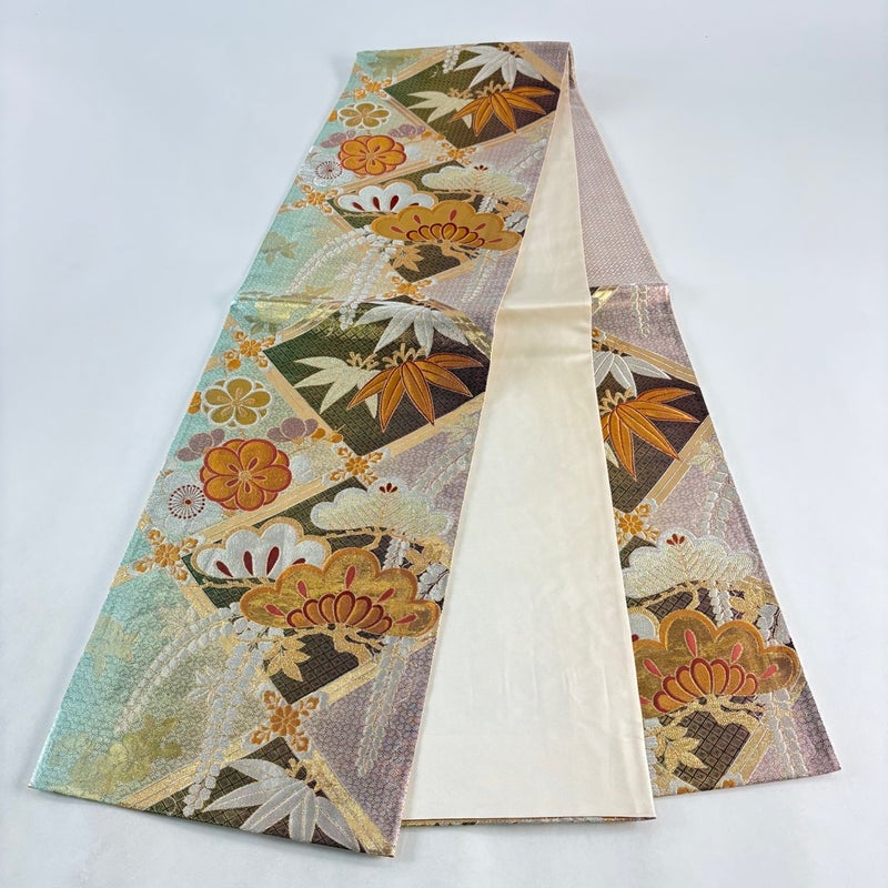 【着物ランク】秀品 【素材】正絹 【帯丈】約436cm 【帯幅】約30.5cm 【帯仕立て】仕立て上がり 【状態ランク】ランクB 【帯着用シーン】フォーマル(留袖・振袖・訪問着)