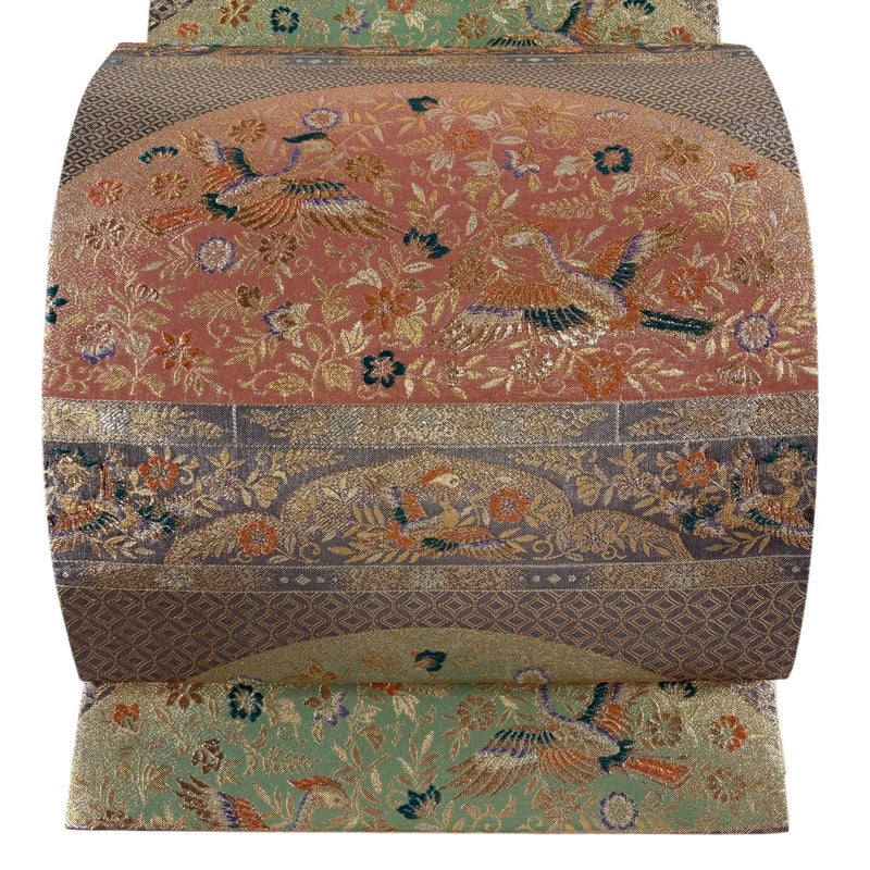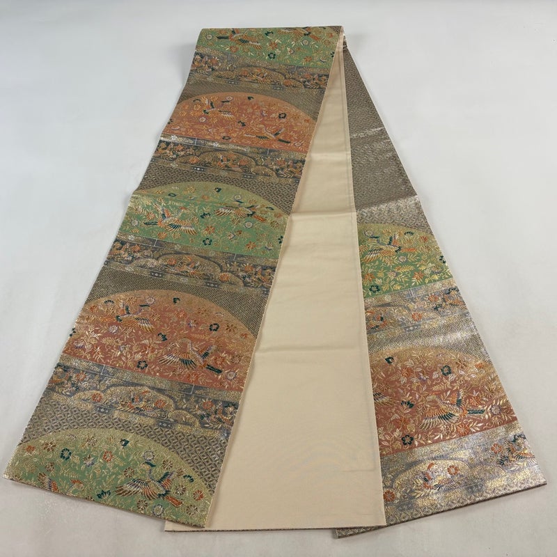 【袋帯】 赤系 ピンクベージュ 秀品 A 帯丈426cm~435cm 7990-9980 美品 二万以下