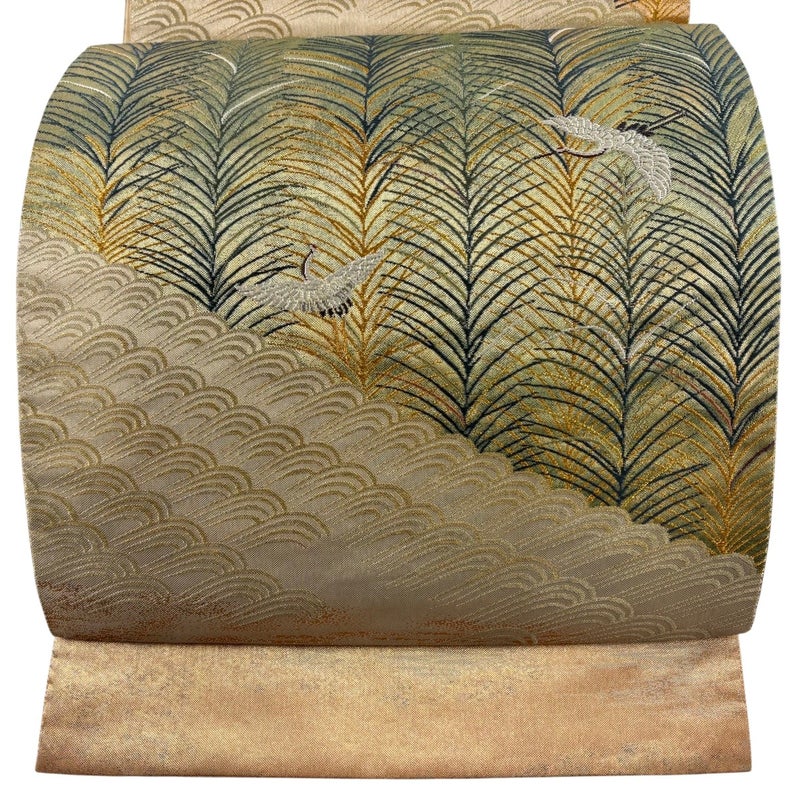 おめでたい席に相応しい意匠の袋帯でございます。 格式高いお席にもお使いいただけますので、お見逃しのないようお願いいたします。 表地に保管によるシワがございます。 リユース品としては目立った染み傷なく、状態の良いお品でございます。 ※なお、厳しく商品の状態確認を行っておりますが、記載の汚れ以外にも見落とし箇所がある可能性がある旨ご了承いただけますと幸いです。 沢山の商品の中からご覧いただき誠にありがとうございます。