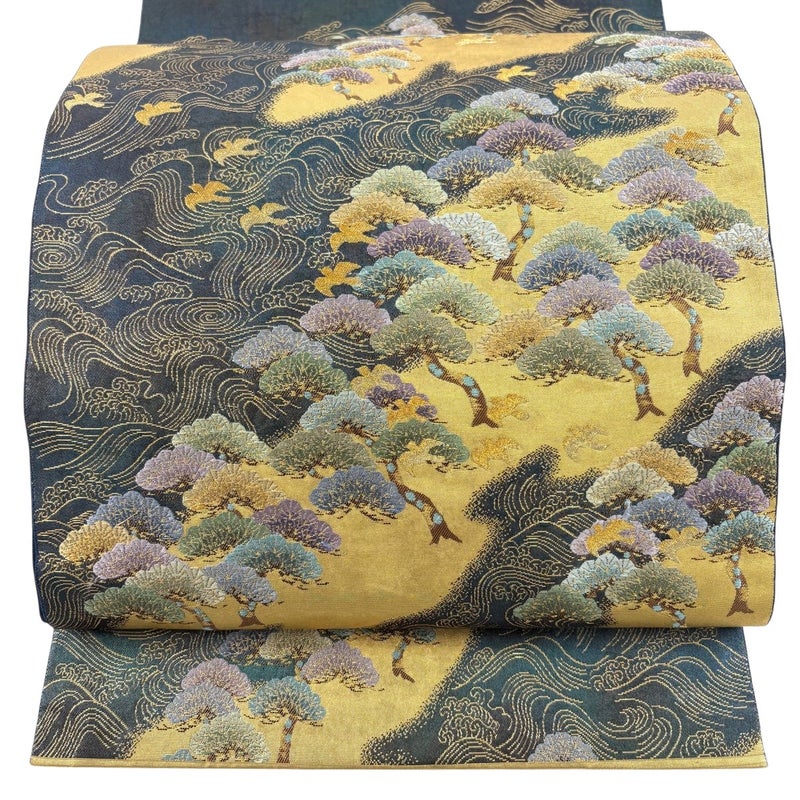 昭和23年に創業した西陣の老舗、「長嶋成織物」の作品です。 おめでたい席に相応しい意匠の袋帯でございます。 格式高いお席にもお使いいただけますので、お見逃しのないようお願いいたします。 締め跡がございます。 前柄付近と手先にシワ、締め跡沿いに箔の傷みがございます。 リユース品としては目立った染み傷なく、状態の良いお品でございます。 ※なお、厳しく商品の状態確認を行っておりますが、記載の汚れ以外にも見落とし箇所がある可能性がある旨ご了承いただけますと幸いです。 沢山の商品の中からご覧いただき誠にありがとうございます。