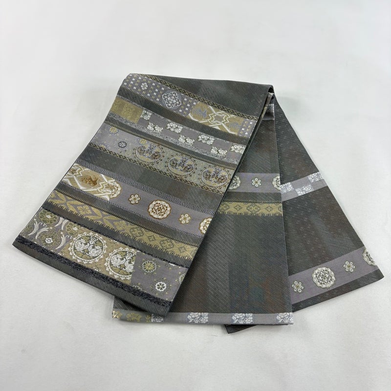 【袋帯】 灰色系 灰緑 秀品 A 帯丈426cm~435cm 7990-9980 美品 二万以下