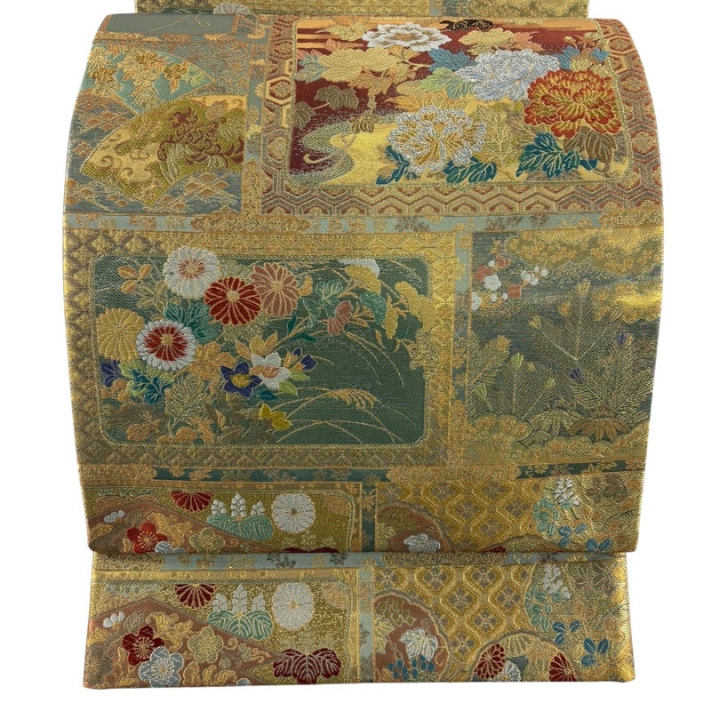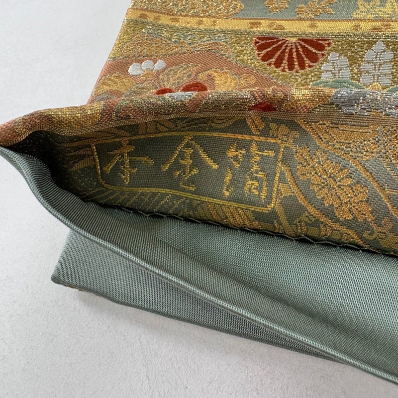 【袋帯】 灰色系 灰緑 秀品 A 帯丈426cm~435cm 7990-9980 美品 二万以下